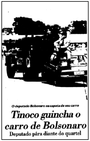 A sociogênese da imagem pública - ou seja, a primeira vez em que “possíveis leitores vão saber da existência” de Jair Bolsonaro por meio dos jornais - é algo extremamente relevante para atentarmos como a memória social e, por conseguinte, a imagem pública, vai sendo instilada por capilaridade ao longo de um lento e imprevisível processo histórico mediado pelas notícias de jornal16. Sabemos que a leitura e os comentários sobre fatos descritos nos jornais ocupam uma parte significativa do conteúdo da vida nas grandes cidades. Além disso, as “percepções reproduzidas ao longo do tempo” se conectam ao “efeito cumulativo do próprio jornalismo e de outros aparelhos ideológicos” (MIGUEL, 2015, p. 174). Por fim, temos uma imbricada caixa de ressonância, entre memória, cultura e sociedade que se articulam na elaboração da imagem pública de todo e qualquer agente político.