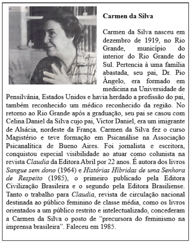 SILVA, Carmen da. O melhor de Carmen da Silva. Rio de Janeiro: Rosa dos Tempos, 1994.