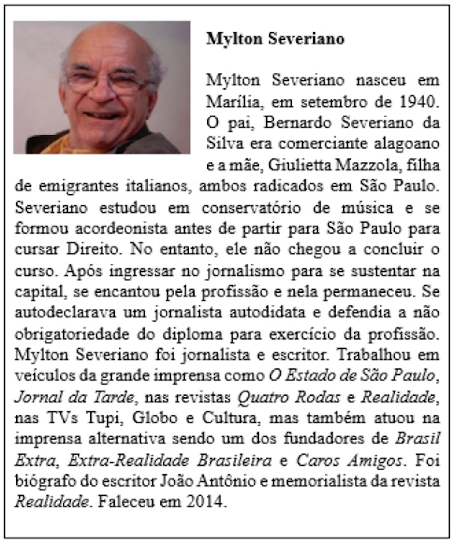 A despeito das remissões ao passado, a conjuntura atual dos testemunhos é por vezes mais significativa. Mas que contexto é esse? Trata-se do intervalo de tempo compreendido entre as últimas décadas do século passado e as primeiras do século 21 quando houve uma profusão de publicações e registros biográficos de jornalistas. O contexto sócio-histórico em que vieram a público essas produções deixa entrever a estrutura hierárquica da profissão, suas transformações e conflitos internos, bem como os “bastidores” da mudança na identidade profissional iniciada há cinco décadas e ainda em curso. Esse aumento não foi episódico, mas atrelado aos desdobramentos de profissionalização do jornalista cujo processo teve início ainda na década de 1950 com o advento da Indústria Cultural nacional. Os jornais se tornaram empresas e os jornalistas tiveram um aumento salarial que permitiu que a profissão deixasse de ser apenas uma ocupação temporária. Nesse período foram criados os primeiros cursos superiores de jornalismo, da Fundação Cásper Líbero (1947) e da Universidade do Brasil (1948), atual Universidade Federal do Rio de Janeiro. Contudo, o ápice do processo de profissionalização foi a promulgação do Decreto-Lei n. 972 em 196921 que estabeleceu o diploma de jornalismo obrigatório para o exercício da profissão. Mylton Severiano, integrante da primeira equipe da revista Realidade no livro Realidade a revista que virou lenda assim relacionou a formação dos seus colegas de redação e a posterior exigência do diploma: