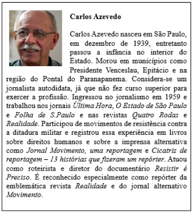 AZEVEDO, Carlos. Cicatriz da reportagem: 13 histórias que fizeram um repórter. São Paulo: Editora Papagaio, 2007.