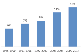 Em conjunto, esses dados refletem uma certa narrativa nacional, que considera a negritude um fato do passado e próprio das esferas “atrasadas” do espaço social, como o campo e as favelas. Contra esses espaços está a cidade moderna e sudestina das décadas de 1990, na qual se ambientam as novelas que não se preocupam em tematizar a questão racial e, como resultado, se tornam majoritariamente brancas. É preciso reconhecer, contudo, que a Rede Globo de Televisão vem envidando esforços para aumentar a diversidade em sua programação. Novelas como Viver a Vida, Da Cor do Pecado e Lado a Lado foram patrocinadas pela emissora, ao menos nominalmente, com esse intuito. Só em 2015, ano que ainda não foi incluído na nossa base de dados, uma novela com uma protagonista negra e boa parte do elenco composto por atores e atrizes pretas e pardas (Babilônia) e dois seriados com a mesma característica (O Sexo e as Nêga e Mister Brau) foram lançados. Mas embora nossos dados sejam sensíveis a essa reorientação da emissora, eles também revelam a timidez de seus esforços. Dividindo o período analisado em seis partes, percebemos que o percentual de personagens não brancos de fato aumentou, mas como o patamar inicial na década de 1980 era muito baixo (6%, em média), o patamar do último quinquênio, 12%, é ainda bastante tímido se levarmos em consideração a proporção de não brancos na sociedade brasileira ou na Região Sudeste. Se o crescimento da proporção de pretos e pardos nas novelas continuar à mesma taxa média observada no período analisado, demoraríamos mais 120 anos para atingir a proporção populacional de 51%.