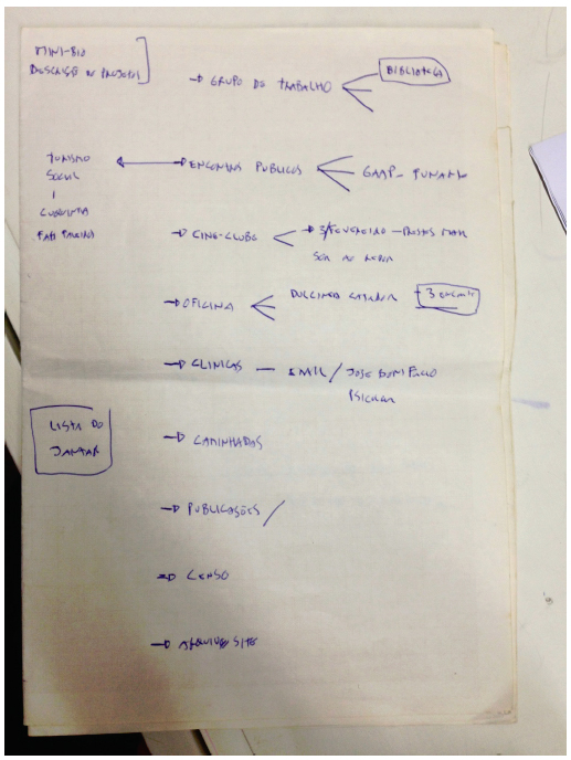 Foi uma boa noite, mas compreendi, com eles, que aquele era apenas o começo, um sentimento reforçado por um esboço no caderno de notas de Ícaro, que ele me mostrou alguns dias depois, detalhando as atividades que estava propondo para os dois meses de residência que lhe restavam: