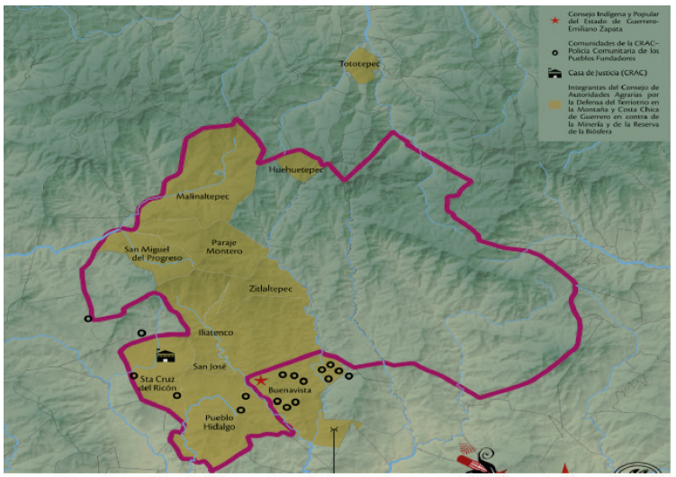 Já Guerrero possui uma extensão territorial de 63.794 km² e a terceira maior população indígena do México. No total, são 3 milhões e 388 mil habitantes (INEGI, 2010), 81 municípios, e sete regiões: Norte, La Montaña, Centro, Tierra Caliente, Costa Grande, Costa Chica e Acapulco de Juárez. A agricultura de subsistência é a maior atividade econômica da região e o estado ocupa o primeiro lugar no índice nacional de migração interna. O estado é um dos mais pobres do país, mas paradoxalmente rico em sua produção de minério e ouro. No que se refere ao nosso recorte empírico, La Montaña é um local de escasso saneamento básico.