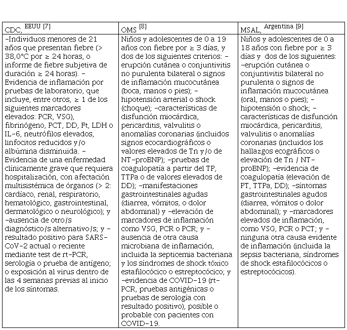 Asimismo, se menciona el SIM-C en la población pediátrica con una definición adaptada de la OMS. En la tabla I, se observan los criterios definidos por las diferentes organizaciones e instituciones.
