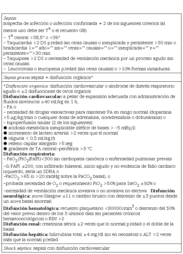 Si bien la sepsis es una entidad clínica que aún se encuentra en debate, se ha llegado a un consenso respecto de algunos criterios para su uso en pediatría.