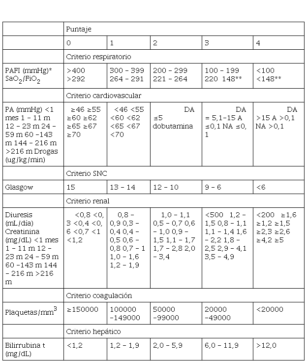 Algunos autores plantearon la necesidad de redefinir la sepsis e incluir la evidencia de disfunción orgánica en la misma. El consenso pediátrico de la campaña Surviving Sepsis publicado en 202014 consideró la presencia de sepsis cuando se encuentra asociada a disfunción orgánica y de shock séptico cuando se asocia a disfunción cardiovascular, siguiendo los criterios de Goldstein del año 2005. En cuanto a la definición de disfunción orgánica, recomendó también utilizar los criterios de Goldstein 2005 (Tabla I) o el score SOFA adaptado a pediatría, en la línea con los criterios de Sepsis-3 (Tabla II).
