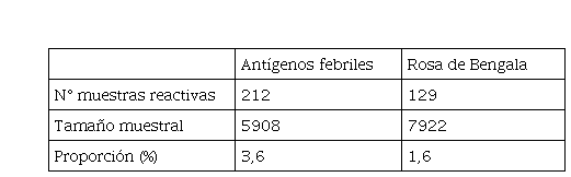 Palabras clave: anticuerpos anti-Brucella, antígenos febriles, Rosa de Bengala, banco de sangre.