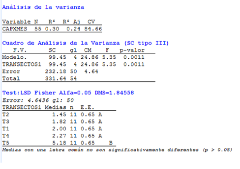 | Meses - transectos | T1 | T2 | T3 | T4 | T5 | TOTAL |