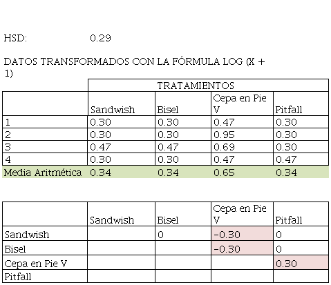 El tratamiento correspondiente a la trampa de pseudotallo cepa en pie tipo V, permitió la captura del mayor número de insectos adultos. Los otros tratamientos no mostraron diferencias significativas entre ellos ( Tabla 1).