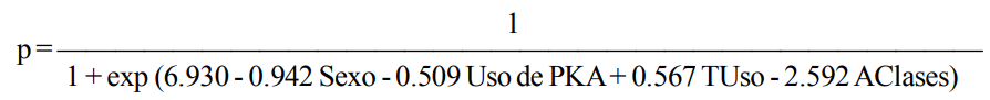 Al realizar los diferentes ensayos y corridas se pudo observar que el mejor modelo se logra al introducir la variable sexo. Además, de las variables uso de la plataforma y tiempo de uso en conjunto con el resto de las otras variables permiten el mejor ajuste del modelo probado a través del Test de Hosmer y Lemeshow.