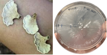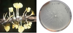 Dentro de los géneros con pigmentos en cultivo sobresalen: Amauroderma, Marasmius, Geastrum y Trametes (Fig 1 y Fig 2). El color y los pigmentos varían con la cepa y los medios sobre los cuales se cultiva el micelio. Otro aspecto de la apariencia del micelio es su tipo de crecimiento, ya sea aéreo o deprimido, algodonoso o rizomórfico. El micelio aéreo puede estar relacionado a menudo con la alta humedad. El micelio comprimido también puede ser un carácter específico de la especie o puede ser el resultado de condiciones secas. Los patrones en los hongos pueden estar alterados por pH, temperatura, luz y humedad. Por esta razón, es que de una misma especie o género pueden existir patrones de micelio diferentes (Stamets y Chilton, 1983).