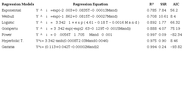The following criteria evaluated the models: Coefficient of Determination of the Model (R²), Akaike's Information Criterion (AIC) and Sum of Square of Residuals (SSR).