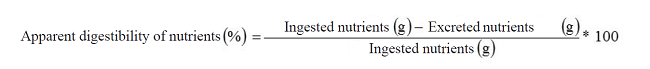 The apparent fecal digestibility of nutrients was determined according to the equation suggested by Pérez et al. (1995b):
