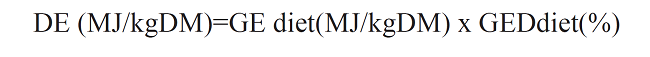 Digestible energy (DE) of diets was obtained by multiplying GE digestibility value by the gross energy value, obtained from each diet. The same calculation was made for digestible protein (DP) of diets.