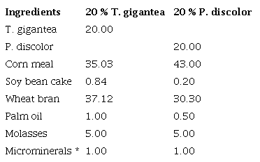 Treatments. T1 control (conventional supplement), T2 (2 kg of supplement with 20% of inclusion of T. gigantea) and T3 (2 kg of supplement with 20% of inclusion of P. discolor).