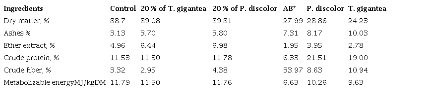 Proximal chemical analyzes were carried out in the laboratory of AGROSAVIA (Cundinamarca). They were calculated according to procedures and recommendations established by AOAC (2016): humidity content (method 930.04), crude protein (CP) according to Kjeldahl (N 6.25) (method 955.04), ashes by calcination at 6,000 (method 930.05), ether extract (EE) (method 962.09) and crude fiber (CF) (method 920.39). The metabolizable energy (ME) was determined from the percent of total digestible nutrients (TDN) (Yglesias et al. 2015) and NDF and FDA were determined by the method of Goering and van Soest (1970) (table 2).