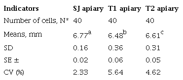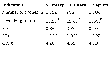 Body mean lengths drones at birth (table 2) are between 15.40 ± 0.70 mm and 15.57 ± 0.66 mm, the highest value corresponding to samples obtained from the SJ apiary.