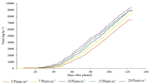 Through the simulation it was shown that with a density of 7 plants m-2 the highest yields can be obtained.