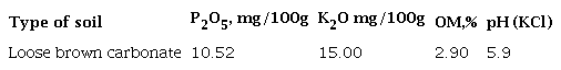 Fertilization with organic matter. A mixture of soil and organic matter (3: 1 ratio) was applied, in a dose equivalent to 30 t/ha, whose composition is shown in table 1.