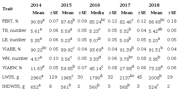 The superiority of other breeds evaluated in Cuba with respect to the Cuban Brown may be given by the improvement processes to which their populations have been subjected at different times, since the beginning of rabbit breeding in the country (Ponce de León 2010). Meanwhile, the Cuban Brown genotype is incorporated into the work of genetic improvement as a pure breed and inbreeding control in western conditions, in 2014. In this regard, Kumaresan et al. (2011) pointed out that the sustained selection of a breed for particular environments is essential to obtain satisfactory productive results. However, when analyzing the average performance of the reproductive traits of this breed in the five years of study, a certain advantage is recognized with the use of this genotype for fertility and pre-weaning growth traits (LW35 and INDW35).