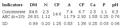 A total of 20 Siboney de Cuba cows were used to evaluate their productive performance, when consuming, as part of their ration, the AEC. Animals had 135 d of lactation, productions of 7.6 kg of milk/d and body condition of 3 ± 0.1. They were separated into two similar groups in lactation days, initial production and body condition and were distributed in two treatments during dry season: a) 1 kg of commercial feed + 3 kg of Cuban silage + grass, and b) 3 kg of commercial concentrate + grass. The level of substitution selected was established from previous observations. In the experimental group, the concentrate (1 kg) was offered in the morning milking, and the 3 kg of the AEC in the afternoon milking. Meanwhile, in the control, 1.5 kg of concentrate was administered in each milking. Then, cows went to the same pasture to consume the grass.