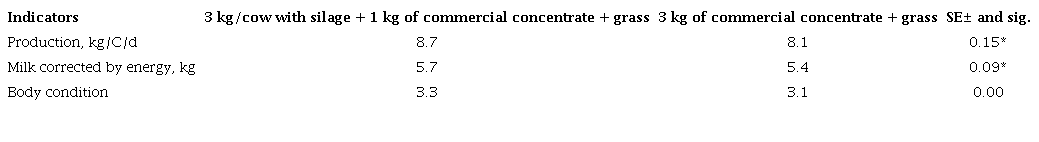 The production of fresh milk and milk corrected by energy during the analyzed period differed significantly in favor of the cows that consumed Cuban silage (table 2), with respect to those that ingested the traditional concentrate. In the former, a greater entry of nutritional factors into the digestive system was evidenced, which are favorable for a production increase (Athuaire et al. 2018 and Lemaire et al. 2019). However, body condition did not indicate improvements in body weight, suggesting that nutrients were targeted at milk precursors, and not weight gain. Probably, in this case, glucogenic factors have predominated, provided by roots and tubers.