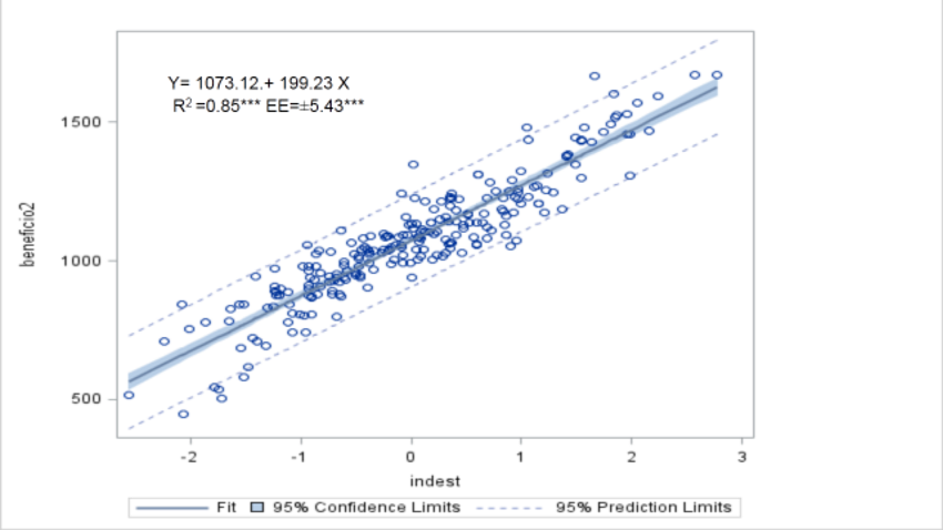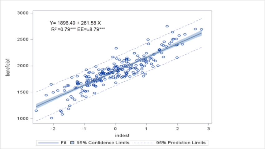 The processing of the rest of the information in the file was carried out in SAS (2013), according to the Proc Mean procedures, and from the indicators obtained in the cost sheets, as well as in the simple and multiple regressions, obtained through Proc GLM between the individual benefits or the standardized selection index with the breeding values of the analyzed variables. The multi- trait program and index were compiled expressly for this study. Precision was also obtained, which consisted of the correlation between the actual and estimated breeding values, through the index that represents the square root of reliability or R2.