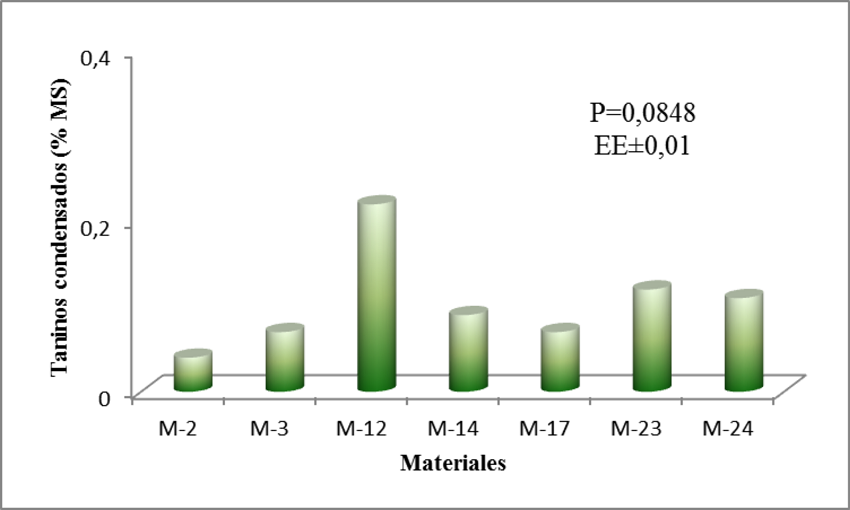 The equality in the content of TCT, which was observed in the materials in the dry season, could indicate that they reacted in a similar way to environmental stress in this climatic season. The materials emitted similar responses to physiological changes associated with adverse environmental conditions, which led to the synthesis of similar concentrations of CT (Valares 2011). The CT levels found in this study did not exceed the limits in which intake and digestibility can be affected (García et al. 2008). Considering the beneficial effects associated with these compounds, the incorporation of forages in ruminant diets could reduce methane emissions, as well as improve weight gain, some meat quality parameters and milk production of productive animals (Jenko et al. 2018 and Ku-Vera et al. 2020).