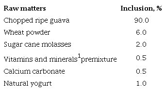 The use of different raw matters and additives in a combination with the ripe guava fruit make a silage food of an appreciable nutritive quality for pigs feeding (table 2).