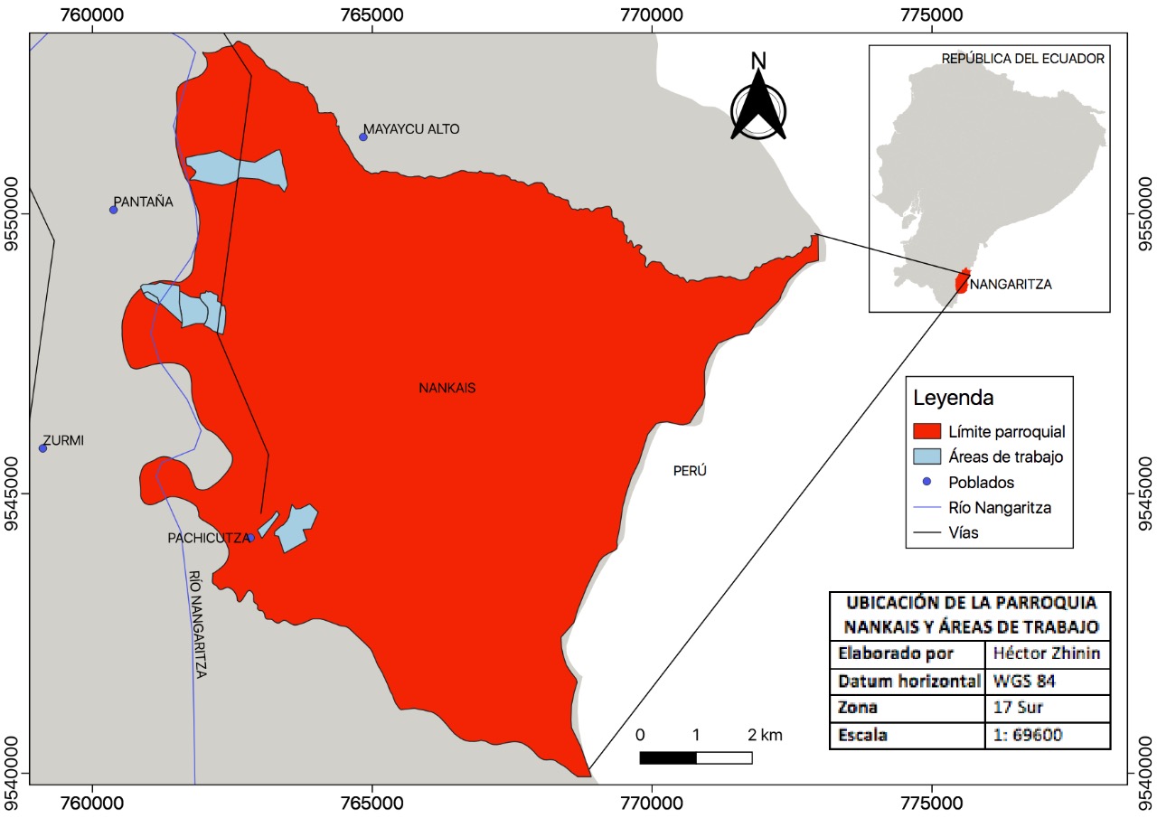 Figure 1. Location map of the Nankais parish and work areas (Nangaritza-Zamora Chinchipe-RSE).