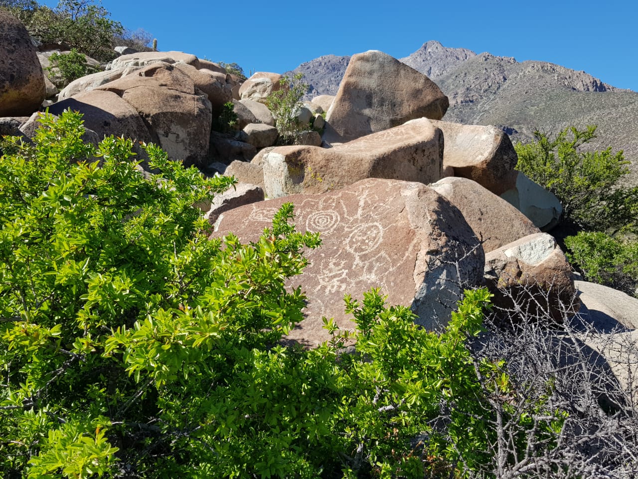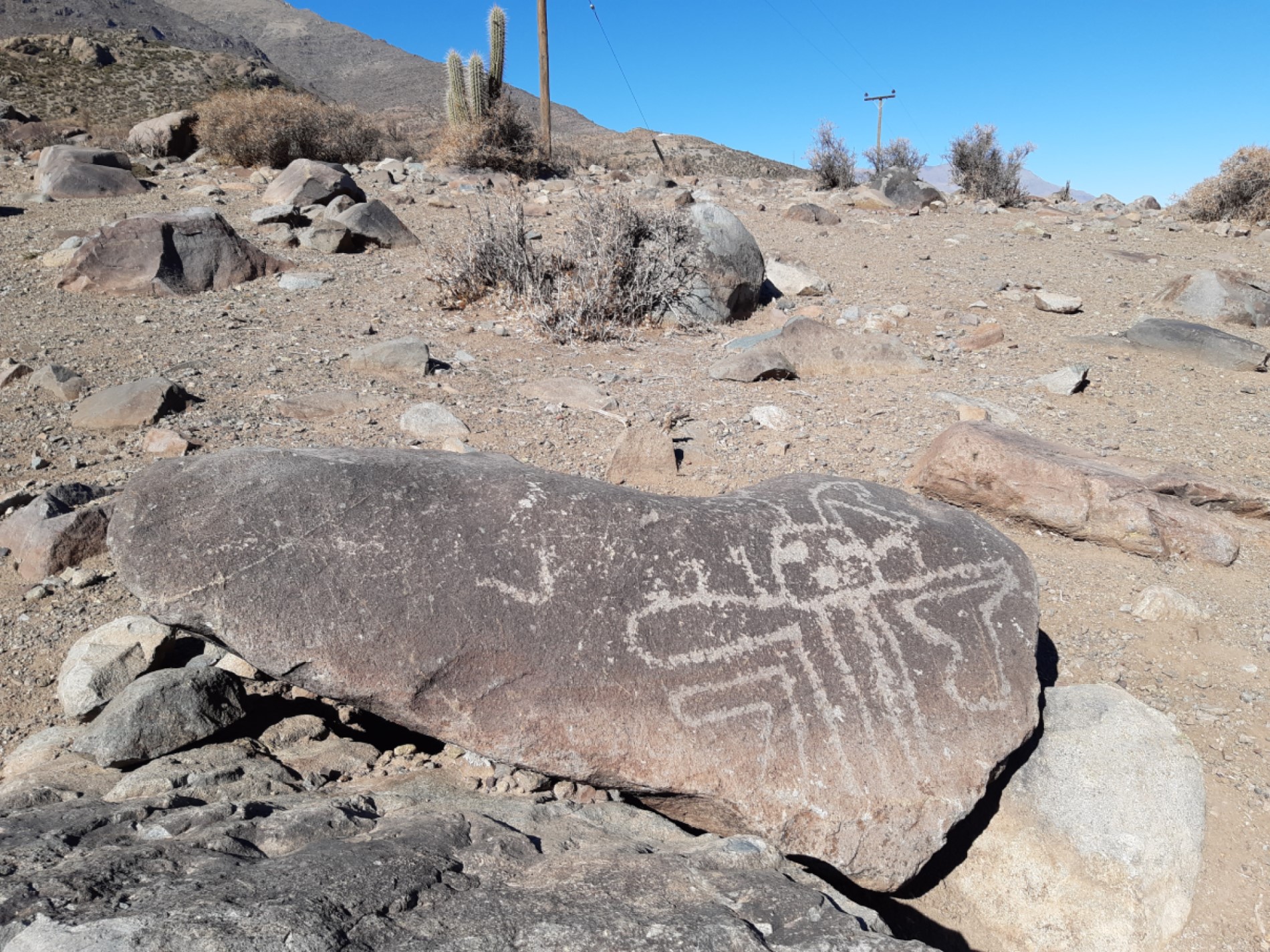 El sitio arqueológico El Pedernal en la comuna de Petorca, conforma un campo de alta concentración de petroglifos (Figura 2) en un espacio aproximado de dos hectáreas, con alrededor de 54 bloques de petroglifos. Cercano al anterior punto, en el sector de Chalaco, el sitio arqueológico Quebrada la Monhuaca a 17 kilómetros del centro urbano de Petorca, posee un afloramiento rocoso en el cual se encuentra un número cercano a 20 bloques con representaciones zoomorfas y geométricas figurativas (Figura 3), junto con material lítico y cerámico. Según los trabajos realizadas en el sector, el sitio en específico corresponde a un lugar de culto prehispánico debido a su ubicación y motivo de las representaciones.