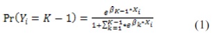 Donde K es el número de alternativas de motivación para consumir productos agroecológicos (en este caso dos), una de las cuales es la motivación principal y/o secundaria para que un individuo i consuma productos agroecológicos, X es un vector de variables explicativas que serán descritas a continuación y ? es un vector de coeficientes cuya magnitud y dirección son de fundamental interés para este estudio.