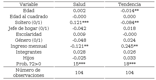 Los efectos marginales de un análisis logit multinomial se presentan en la Tabla 2. La probabilidad de que un individuo adquiera productos agroecológicos debido a que hacerlo es una tendencia se reduce con la edad. Cada año (a partir de los 18) extra reduce esta probabilidad en 1.4%. Las probabilidades de consumir productos agroecológicos por motivaciones de salud son más altas para individuos solteros. El ser soltero incrementa la probabilidad de consumo en 12%. En contraparte, el ser soltero disminuye la probabilidad de consumir productos agroecológicos en 8%.