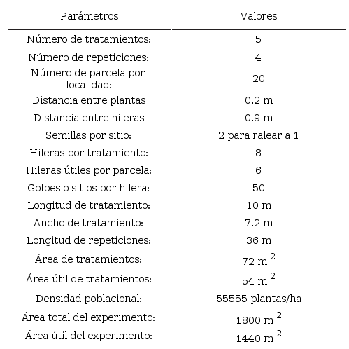 En la Tabla 3 se presentan las especificaciones de siembra de los híbridos de maíz en estudio.