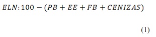 El extracto libre de nitrógeno (ELN) se obtuvo por diferencia utilizando la siguiente ecuación: