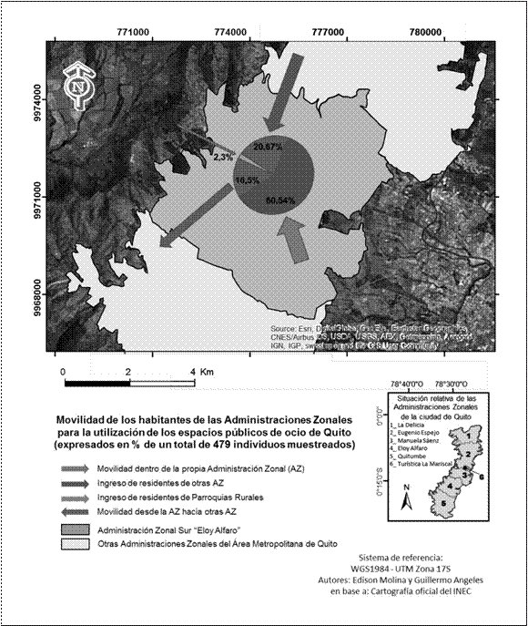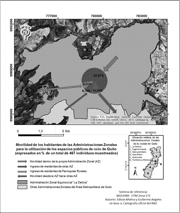 Abstract: This paper shows the profile of the resident based on the leisure activities carried out in the public space of the city of Quito, a metropolis with physical characteristics that influence mobility. The application of the empirical study provided the guidelines to identify the preferences of the inhabitant. The geographical approach presented here links the study of leisure and its spatial repercussions in the territorial context of the city. The questionnaire has indicators several indicators including tastes, perception and satisfaction with respect to the current offer, which reflects previous experience with leisure. The segmentation of age groups presents specific characteristics, as well as a differentiation between the results obtained for masculine and feminine individuals. With the support of the geographic information systems, it was possible to obtain the concentration in the use and the mobility of the residents towards the public spaces of leisure (EPO) within the zonal administrations (AZ) and their relationship with the parishes of Quito.