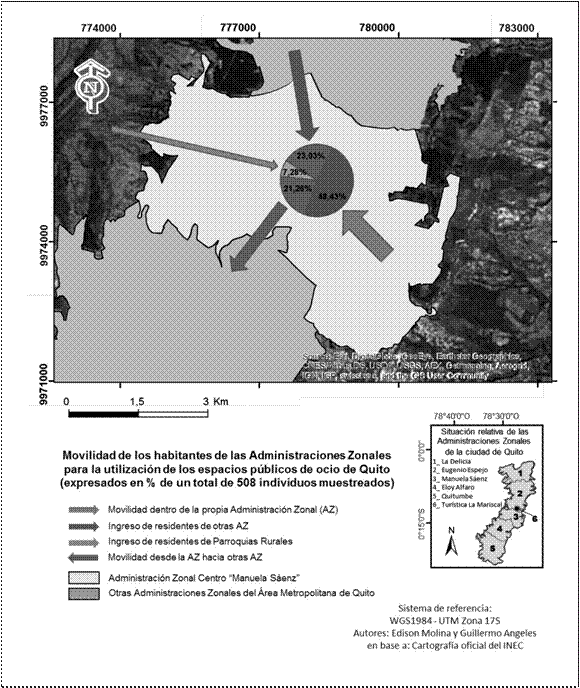 En el caso del área de estudio propuesta hay varias connotaciones físicas hacen que la repartición de los sitios de ocio sea diferenciada; razón fundamental para obtener el perfil del residente y la movilidad desde las AZ a las actividades de ocio en el espacio público en la ciudad. ?La distribución de los EPO en Quito es desigual, debido a la topografía irregular de la ciudad y a la necesidad de conservación del patrimonio cultural del centro. La convivencia con el desarrollo de nuevas edificaciones resulta una preocupación constante de los administradores por las dificultades de accesibilidad a estos espacios? ( Molina, Ercolani y Ángeles, 2016).