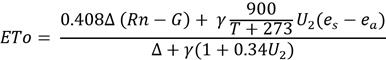 U : Velocidad del viento medida a 2 m de altura (m s -1)