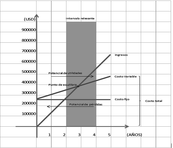 El método utilizado fue el análisis costo ? volumen ? utilidad, que para Welsch (2005) comprende tanto el análisis del margen de contribución como el análisis de equilibrio. El segundo análisis emplea los mismos conceptos que el análisis del margen de contribución. Sin embargo, pone énfasis en el nivel de producción o de actividad productiva, en el cual los ingresos por ventas son exactamente iguales a los costos: no hay ni utilidad ni pérdida. El análisis del punto de equilibrio se apoya en el fundamento de la variabilidad de los costos la identificación y la medición separada de los componentes fijo y variable del costo. Por lo general, el análisis de equilibrio comprende tanto: a) el análisis del punto de equilibrio como b) las gráficas del punto de equilibrio y se determinan con la siguiente función: