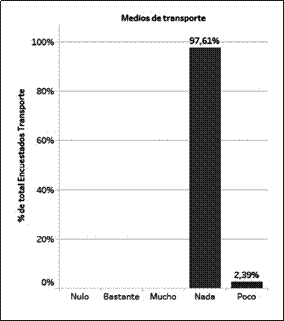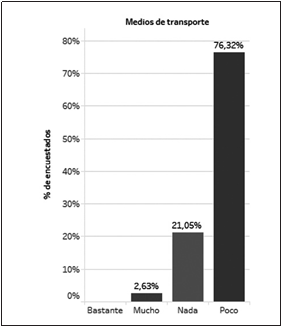 En cuanto a la percepción que tiene la comunidad acerca de la mejora de los medios de transporte, un 76,32% dice que poco se ha ayudado respecto al tema ( Figura 32). Es decir que 9 de cada 10 personas aseguran que no existe intervención en las mejoras de transporte por parte de FEEP. Para el ingreso a la comunidad se debe tomar una camioneta o transporte propio, aunque aseguran que con la implementación del turismo en la comunidad es más constante el flujo de transporte. Las ?carreras? de las camionetas son tomadas en grupo para abaratar costos ya que se divide el total para los que integran el grupo.