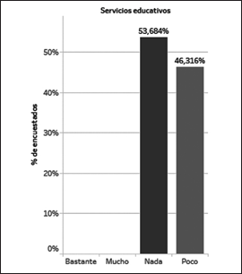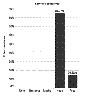 En lo referente a mejoras de los servicios educativos por la vinculación de la comunidad al proyecto, se señala que su participación es nula con un 85,17%, con respecto a este punto ( Figura 17).