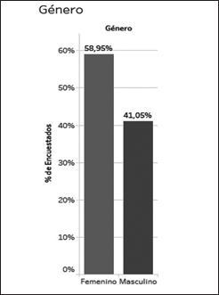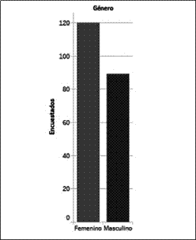 La figura 7 muestra que la población se encuentra integrada en su mayoría por mujeres, circunstancia que es común en Ecuador puesto que según el INEC (2010) existen en el país más mujeres que hombres. No existe sesgo significativo en los resultados.