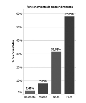 Sobre el funcionamiento de los emprendimientos turísticos de la comunidad con el Tren Crucero el conocimiento es Poco con un porcentaje de 57,89% ( Figura 25). Es decir, 9 de cada 10 personas manifiestan que casi no conocen acerca de los emprendimientos turísticos generados por el Tren Crucero. Aunque tienen conocimiento acerca de que el producto envía turistas al igual que otros operadores con los que trabajan pues la comunidad como tal tiene establecido ya su propio centro turístico comunitario.