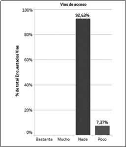 En cuanto al mejoramiento de vías de acceso, un 92,63% señala que no se han realizado mejoras de vías por pertenecer al proyecto turístico Tren Crucero ( Figura 30). Más bien argumentan que la ayuda proviene del Consejo Provincial, el cual ha efectuado las respectivas mejoras en las vías que van hacia la comunidad. Las vías de ingreso a la comunidad se encuentran en excelente estado. Para el ingreso se debe tomar el bus que va por la vía a Guaranda, hasta la entrada a la comunidad Palacio Real en la cual se debe caminar alrededor de 1 km para el ingreso.