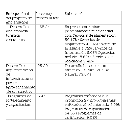 Se considera una muestra válida, ya que se aplicó el método etnográfico hasta obtener resultados redundantes en los diferentes aspectos estudiados. Es afín al tema, ya que un gran porcentaje de los proyectos productivos realizados por los voluntarios con la comunidad, tiene relación directa con la provisión de alimentos y bebidas al turista, tal como lo muestra la Tabla 1.