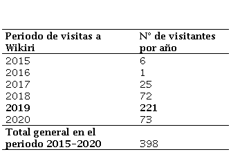 Table 2. Number of visitors to Wikiri in the years 2015-2020.