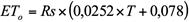 Donde: Raes la radiación solar entrante de onda corta (mm d -1); Tmax, la temperatura máxima (°C); Tmin, la temperatura mínima (°C); KT, 0,162 por regiones internas y 0,19 para regiones costeras.