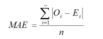 Error medio absoluto (MAE, mm mes -1) , utilizado para establecer la diferencia que existe entre una variable medida con relación a una estimada, es el promedio de todos los errores absolutos; cuando este valor tiende a cero, el error es menor entre la variable medida y la estimada, el valor óptimo es igual a cero (Chai & Draxler, 2014).