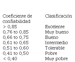 Coeficiente de confiabilidad (C), determina la precisión de los resultados con base en el coeficiente de determinación y el coeficiente de correlación ( Silva et al., 2018 ) ( Tabla 2).