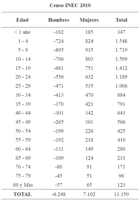 Estas expresiones son muy consideradas por la comunidad Pedro vicentina y celebran con mucho fervor sus festividades, por ello se considera que con una correcta comercialización son potenciales atractivos. Como un elemento agregado dentro del análisis de la población se toma en cuenta el crecimiento y la estructura etaria de la misma según el INEC (2010) en el último censo, como se muestra en la Figura 11 y en la Tabla 7 de la siguiente forma: